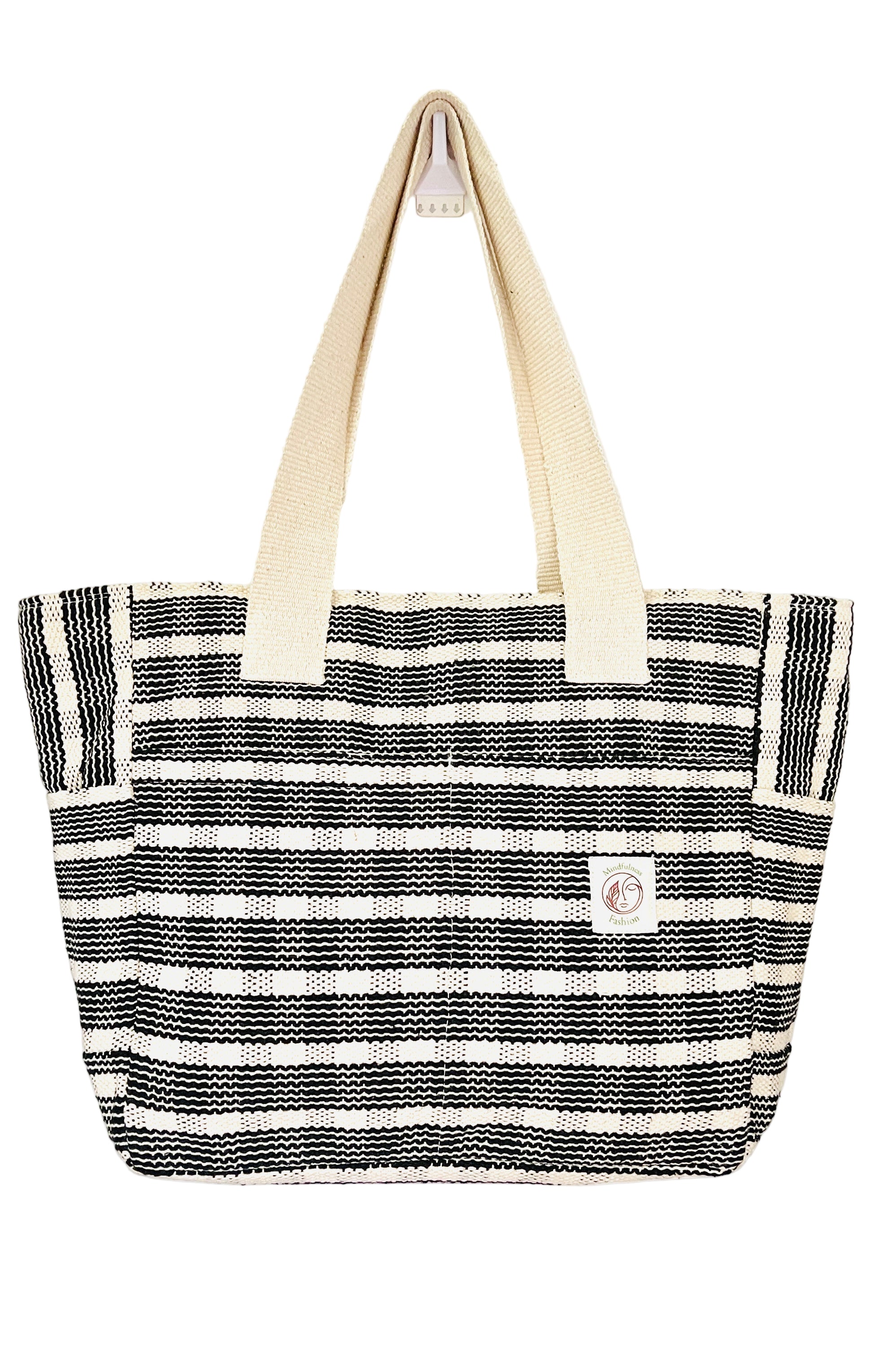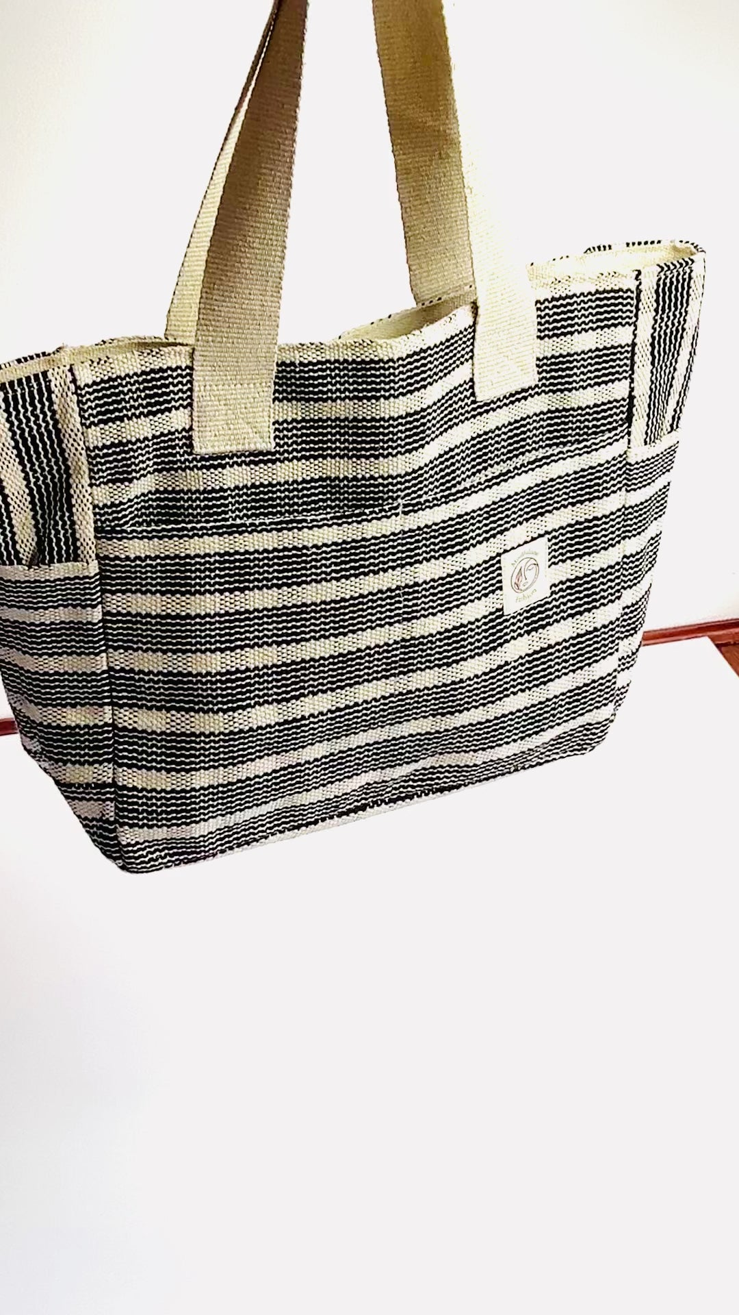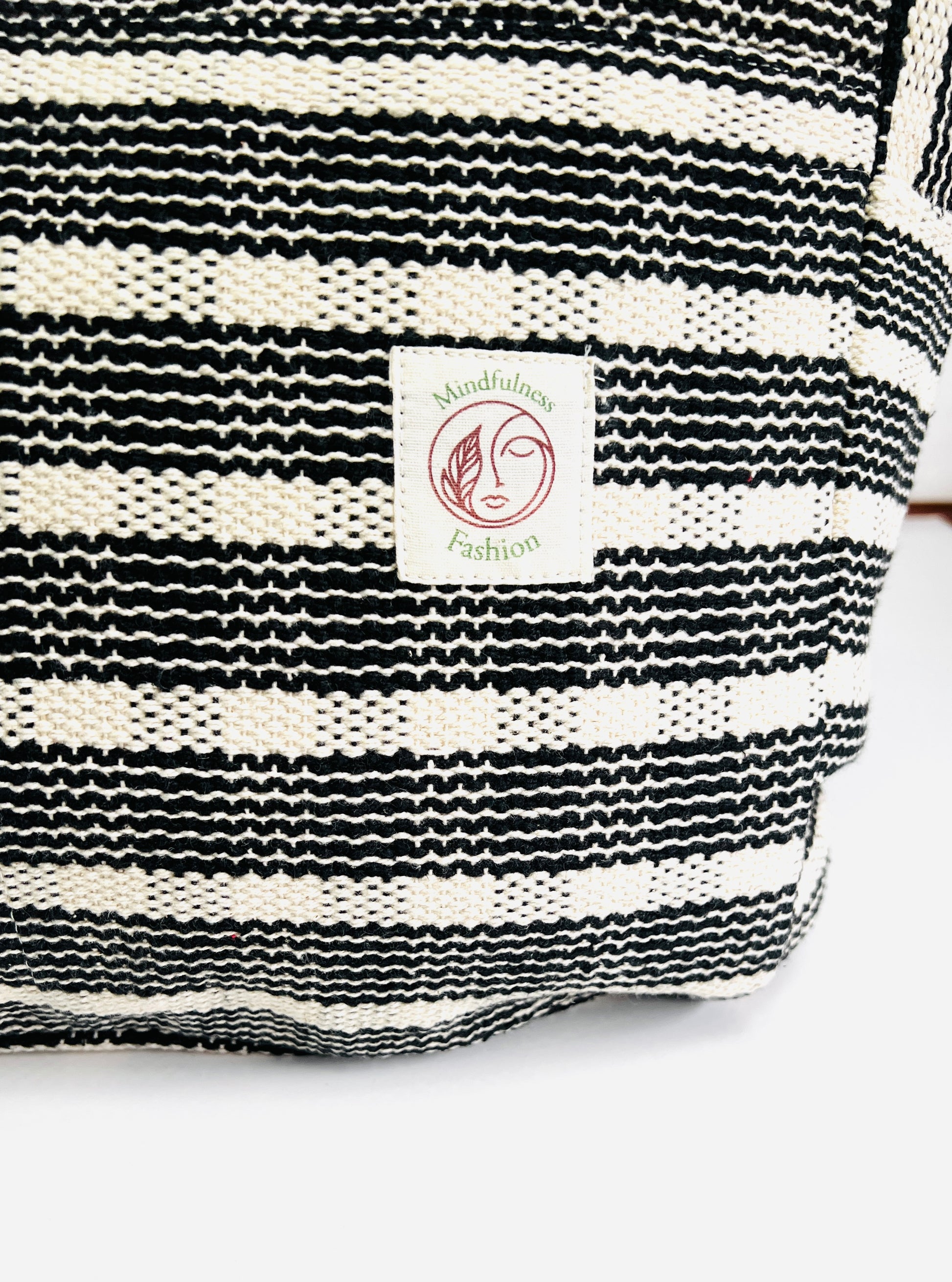 Handmade cotton thread bag. Durable and strong. Stripe carry side bag with lots of pockets and space. Two Side pockets. Two front pockets and one inside pockets. Style your fashion with mindfulness.
