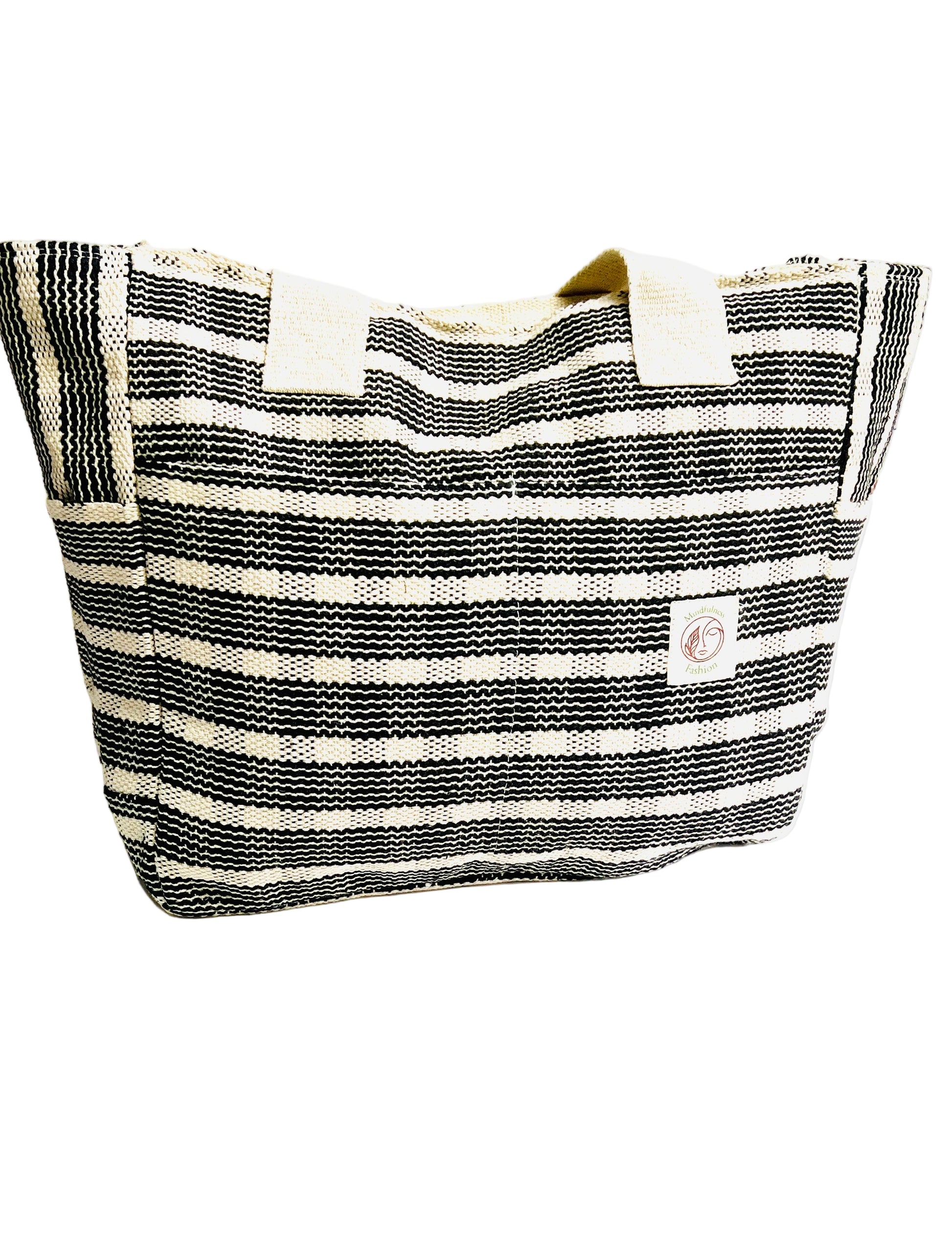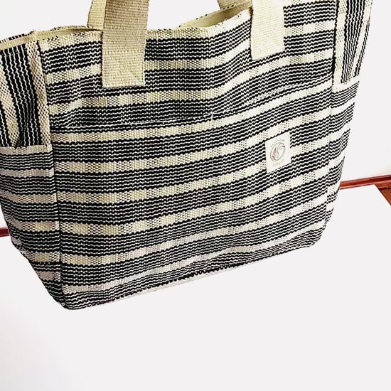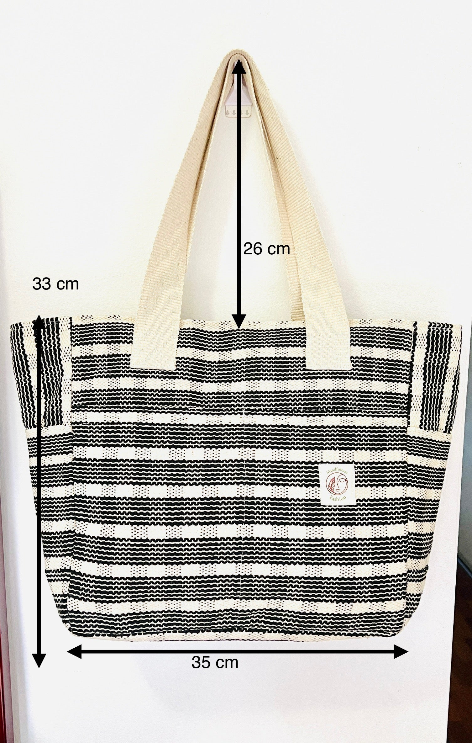 Handmade cotton thread bag. Durable and strong. Stripe carry side bag with lots of pockets and space. Two Side pockets. Two front pockets and one inside pockets. Style your fashion with mindfulness.